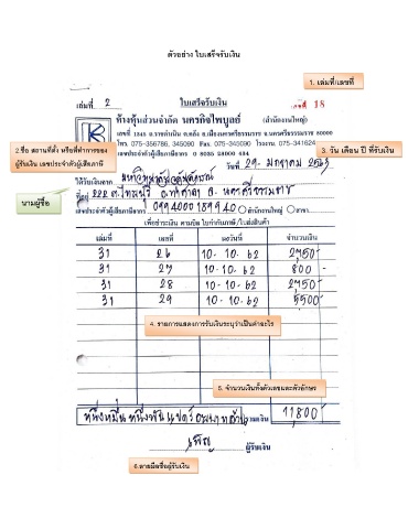 2.ชื่อ สถานที่ตั้ง หรือที่ท าการของ 3. วัน เดือน ปี ที่รับเงิน